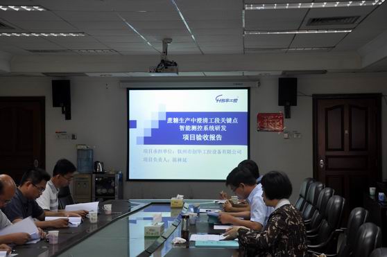 我公司承擔的廣西工業(yè)創(chuàng )新發(fā)展項目—《蔗糖生產(chǎn)中澄清工段關(guān)鍵點(diǎn)智能測控系統研發(fā)》于2015年5月13日在欽州進(jìn)行驗收,廣西壯族自治區工業(yè)和信息化委員會(huì )組織的專(zhuān)家組聽(tīng)取了項目承擔單位情況介紹,審查了相關(guān)材料,經(jīng)過(guò)質(zhì)詢(xún)和討論,專(zhuān)家一致同意項目通過(guò)驗收。